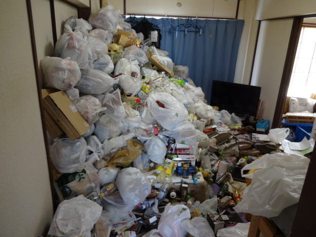 お見積に伺うと3DKの間取りで、各居室にごみ袋が積み重ねられ、その他の状況が把握できない状況でした。